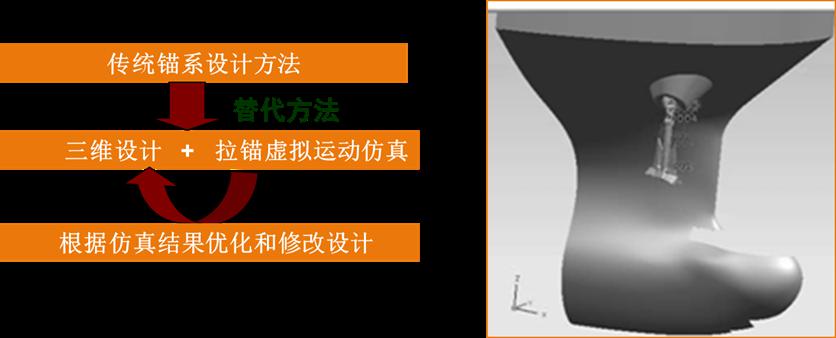 經過與國內行業權威設計院的合作過,并將該技術應用于船舶建造中,對錨鏈筒、錨臺、錨唇、錨穴、錨、錨鏈、錨機、止鏈器、導鏈滾輪、船體等進行三維設計和自動建模,實現了三維錨系計,保證了錨系設計中空間位置定位的準確性,并通過三維軟件導出二維CAD圖紙,扭轉了一直以來二維圖紙與船廠錨系施工脫節的局面,極大提高了錨系設計的效率。除此之外,利用軟件的后期的仿真功能,模擬并預報收錨過程的動態效果并給出調整方案。